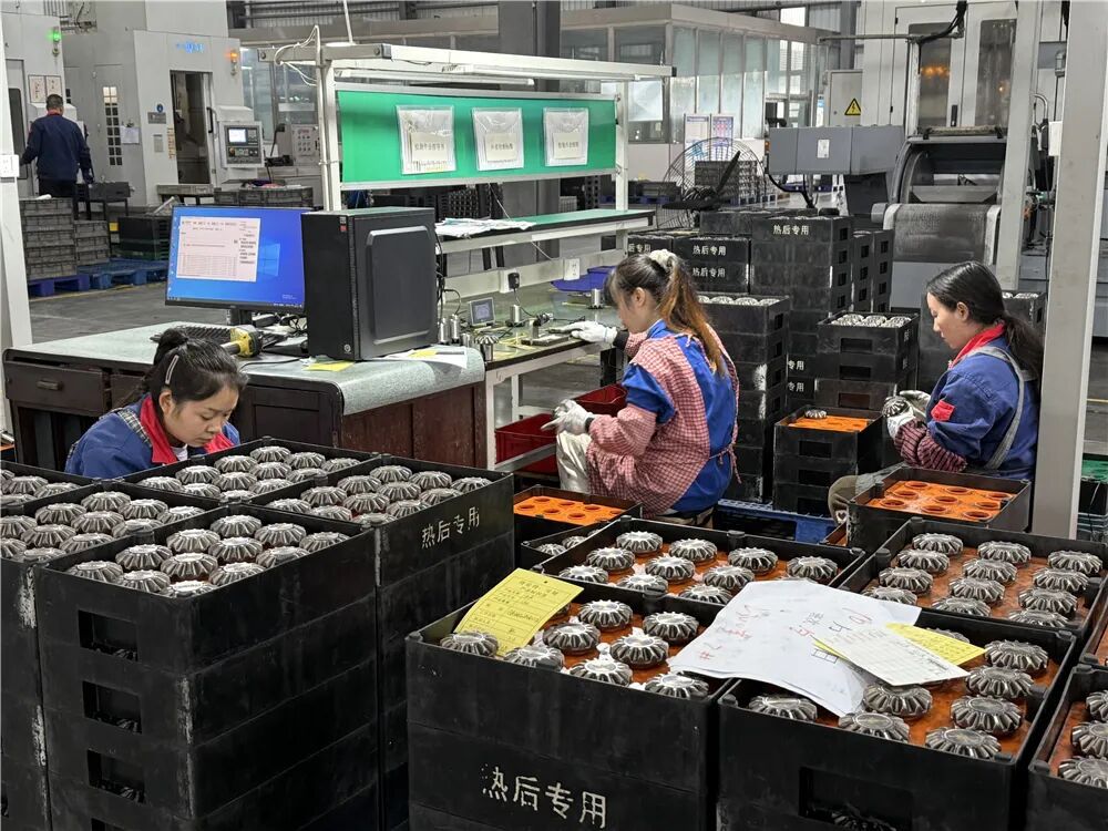 “原材料进厂先下料,经过无心磨、倒角、热锻做成胚件,再正火、抛丸、磷皂化、冷压成型,这才走完8道粗加工工序。”陈光福的声音虽被机器轰鸣声盖过,但依旧清晰有力,“后续还有粗车背锥、钻孔、渗碳强化、抗磨处理等精细加工,前前后后20多道工序,每一步都得‘抠’细节。”