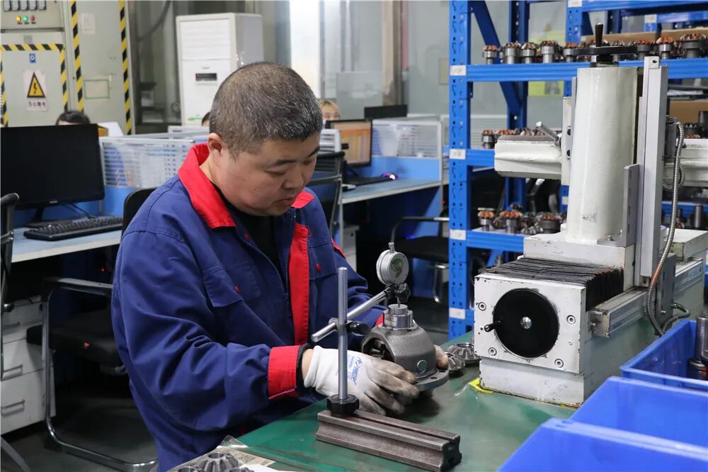 工作人员对齿轮产品进行检测