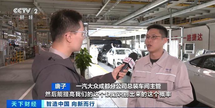 一汽大众成都分公司总装车间主管 唐子:通过大量数据采集,提高缺陷识别出来的概率,该厂区每天最高的日产量能达到1400台车。