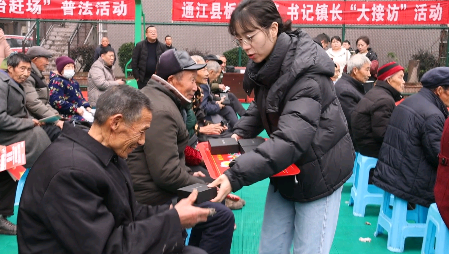 一大早,在巴中市通江县板桥口镇,当地政府工作人员向老人们发放了定制的智能定位手环,这些智能手环不仅能够定位佩戴者的位置,还可以通过手机小程序查询行动轨迹。