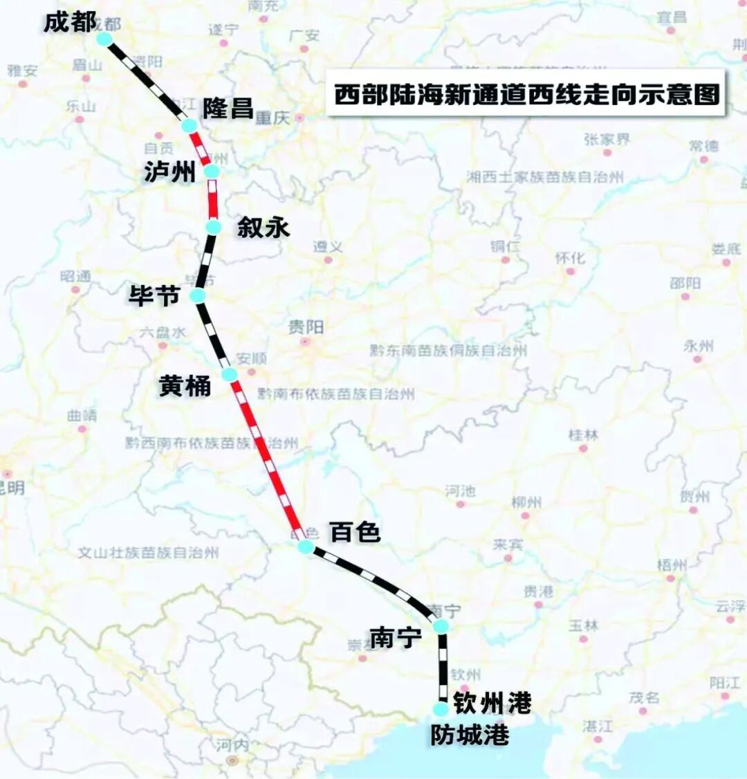 该线路是西部陆海新通道总体规划西线铁路通道的重要组成部分,与已开通运营的叙毕铁路相连,贯通成渝铁路、毕黄铁路以及建设中的黄百铁路,形成四川南向出川直连北部湾的陆海联运大动脉,是四川南向出海最便捷的货运大通道。