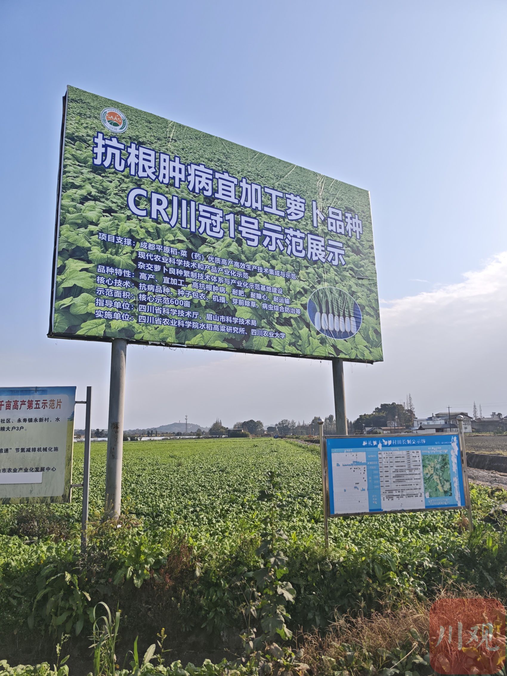 时值冬日,正是萝卜收获尝鲜的好时节。12月23日下午,眉山市东坡区崇礼镇光辉村,几百亩连片的萝卜长势喜人,青绿色的叶片在微风中舒展,“CR川冠1号”的标识牌格外醒目。由省内外农业专家组成的测产验收组,正严格按照农作物测产标准,进行现场测产。
