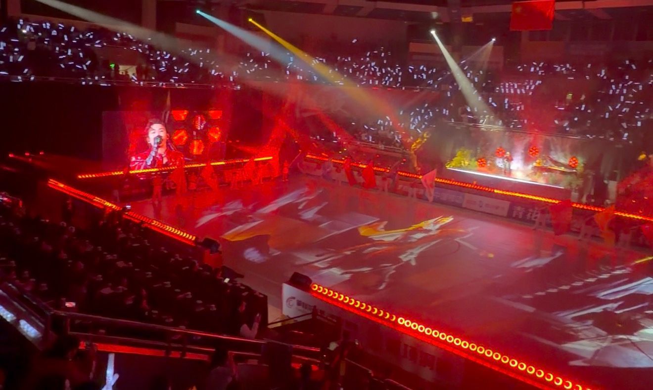 为何选择以地面为舞台视觉中心?四川卫视导演顾诗尧给出答案:“体育馆结构特殊,若设置大型屏幕,难免遮挡看台视线。因此我们依托地面裸眼3D投影,既确保看台观众能清晰捕捉每一处画面细节,又保留了强烈的现场氛围感。”