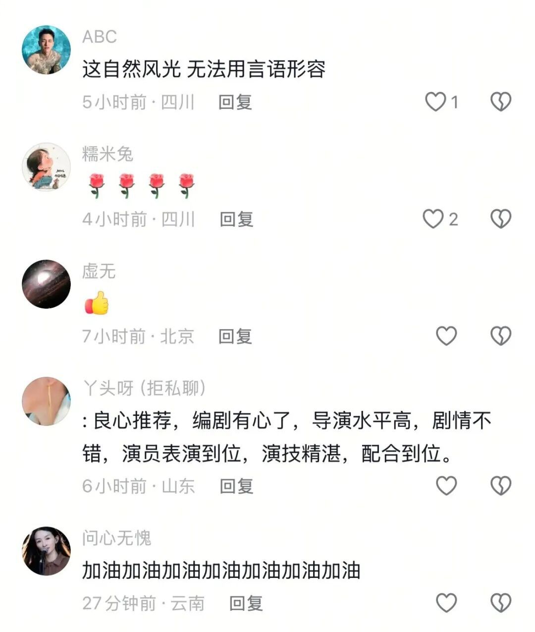 在播出平台的评论区,观众反响热烈到刷屏。“根本看不够!太好看了!”“演技挺不错哦!”“剧情紧凑!”“画面震撼!”成为高频评论,更有网友走心留言:“这部作品真的很出色,从创意到细节都让人眼前一亮,流畅的叙事节奏和细腻的情感表达完美融合……”。而“想立刻出发去甘孜”的呼声更是此起彼伏,直观印证了这部剧在内容与视觉上的双重吸引力,以及对甘孜文旅的强大带动效应。