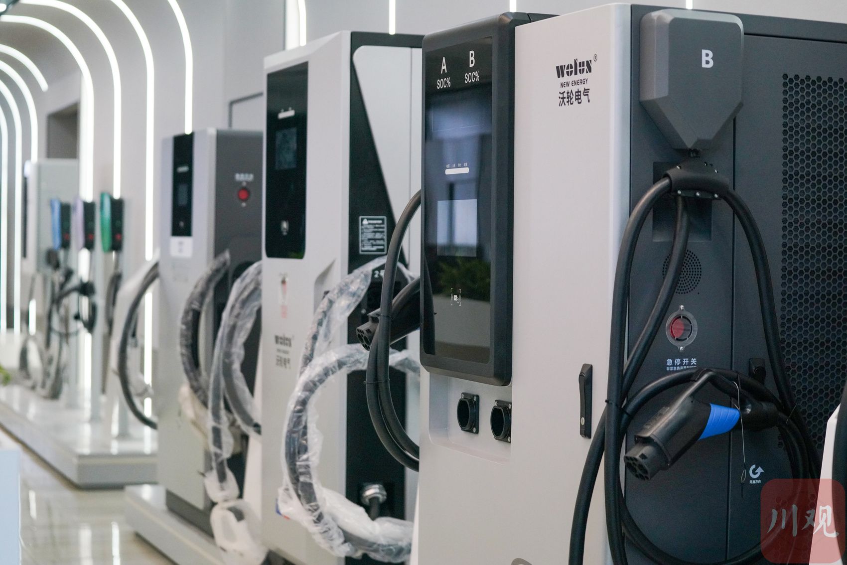 四川沃轮电气制造有限公司生产的新能源充电桩,加快出口步伐(吴聃摄)