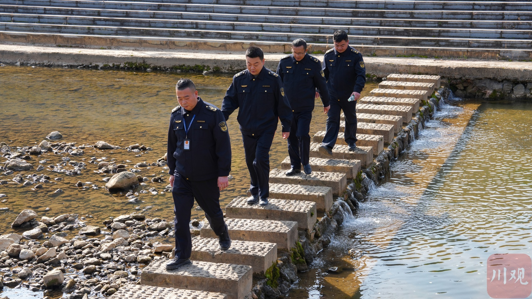 川渝两地生态环境工作人员进行联合巡护。