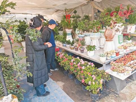 作为今年年宵花中的销量佼佼者,拱兰凭借舒展大气的叶片和艳丽夺目的花朵备受青睐,一盆售价在280至320元之间,成了不少市民的首选。象征“金玉满堂、吉祥如意”的金桔树同样热销,挂满金黄果实的枝头透着满满的喜庆,一盆价格在100至200元不等,大小规格齐全,适配不同家庭摆放需求。