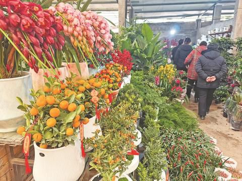 “今年年宵花的价格和去年基本持平,性价比很高,市民选购热情也特别足。”摊主李莉一边麻利地给顾客打包,一边笑着向记者介绍。她的摊位上,拱兰、大花蕙兰、金桔、鸿运当头、黄金万两等热门年宵花摆放得满满当当,各色花卉错落有致,成了市场内市民选购的焦点区域。