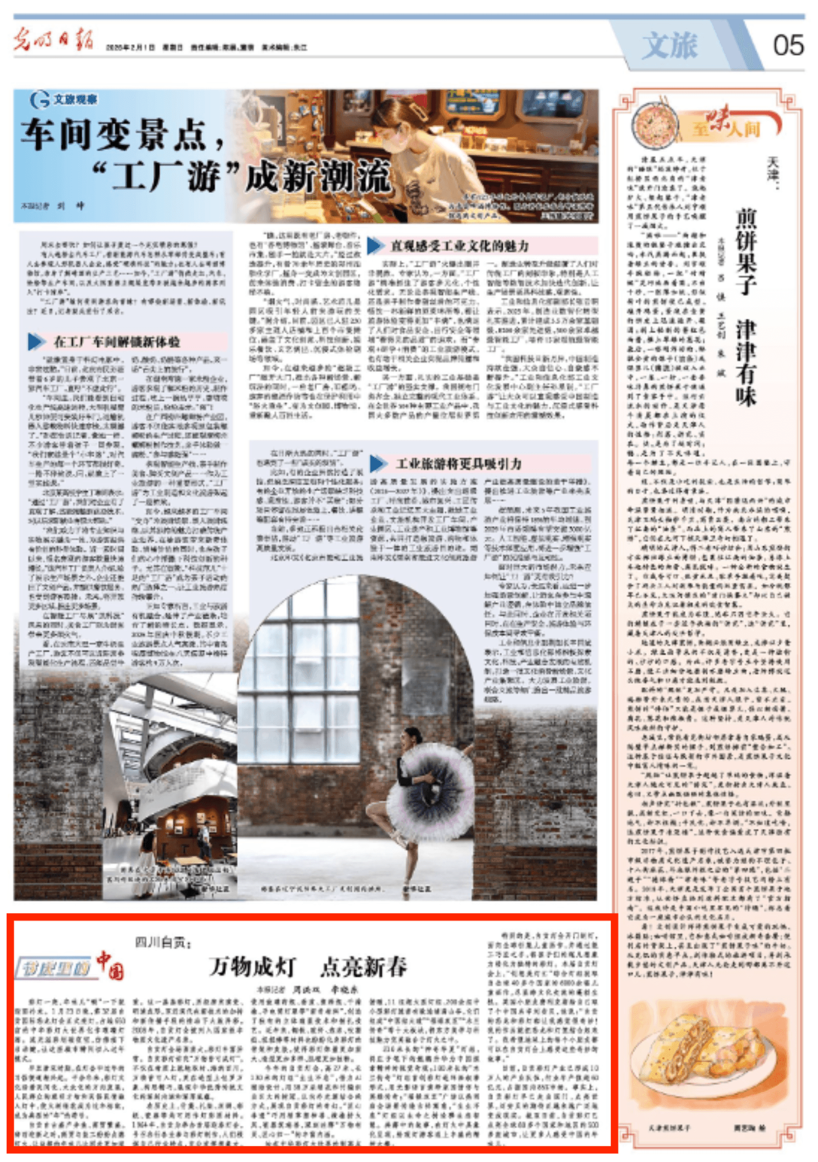 今年的自贡灯会,高27米、长130米的灯组“生生不息”,借力AI辅助设计,用38万朵绢花和竹编织出巨大的树冠,以内外光源结合的方式,展现自贡彩灯的奇幻。“匠心非遗”巧用稻草塑神兽、辣椒拼火凤、瓷器筑瑞兽,深刻诠释“万物有灵、匠心归一”的丰富内涵。