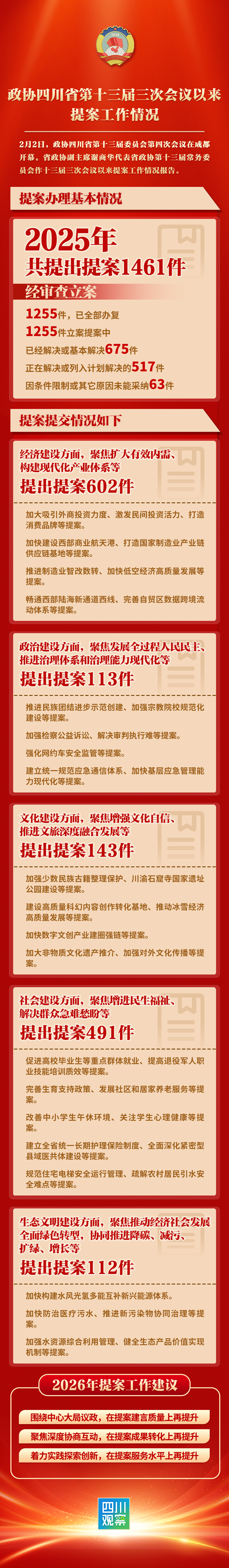 一图读懂丨政协四川省第十三届三次会议以来提案工作情况报告