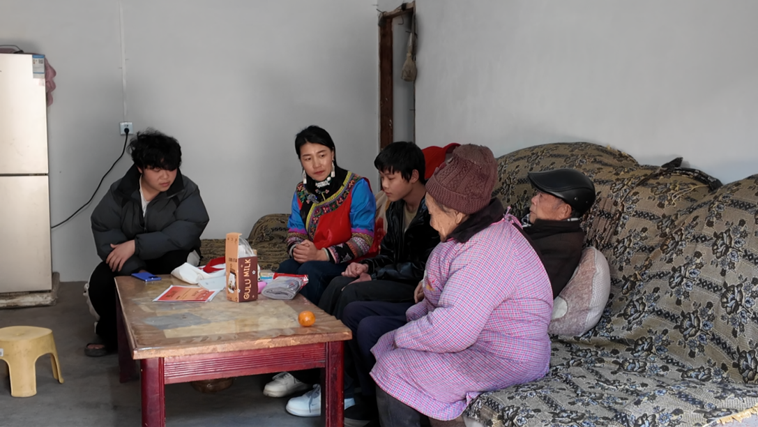 “到了下午,我就是走村入户的‘爱心妈妈’了。”作为村妇联主席,阿衣尔金心里还时刻装着村里妇女儿童的冷暖。提着爱心包,她熟门熟路地走向石林家——这是她帮扶多年的家庭,也是凉山州“爱心妈妈”结对关爱行动中无数被温暖的家庭之一。“叔叔,最近身体还好吧?石林放假了嘎,快来坐!”自2018年起,阿衣尔金就开始关注这个家庭:两位老人带着两个孩子生活,没有稳定经济来源,日子过得艰难。通过多次上门走访,根据实际情况积极对接相关部门,村里为老人办理了低保、高龄补贴和养老金,落实家庭医生签约服务,让老人看病不再犯难,一步步帮助这个家庭走出困境。如今,两个孩子都在安心读书,一个远赴绵阳上大学,一个在本地读初中。兄弟俩常说:“只有读书才能改变命运,将来才能帮助更多人。”