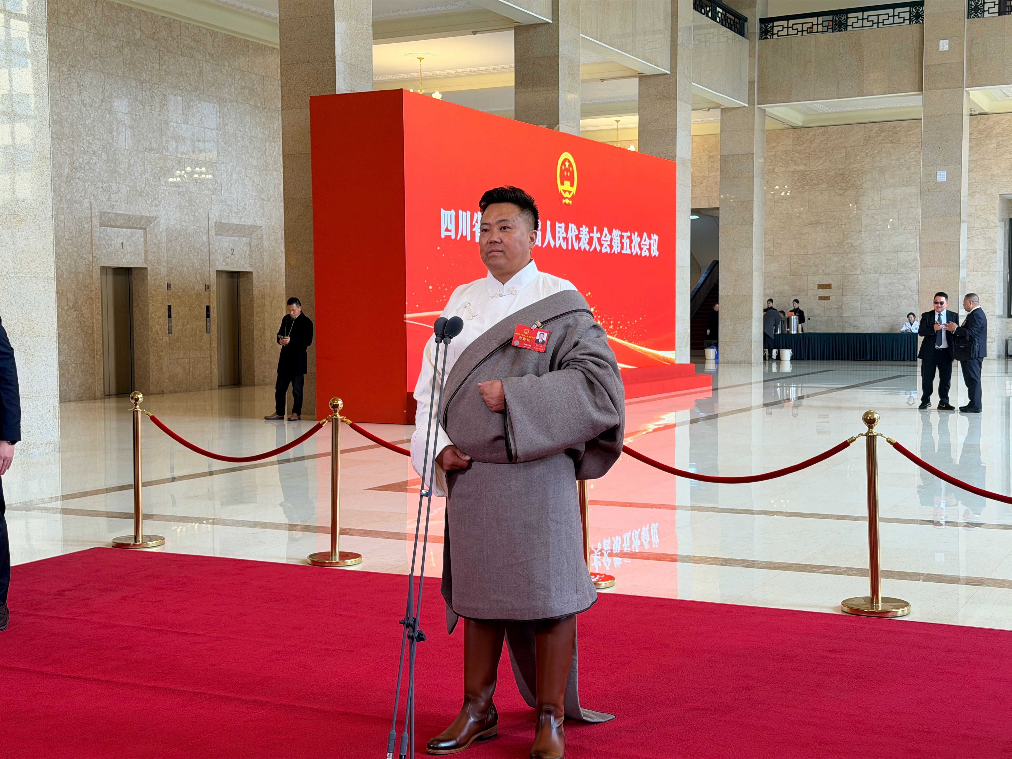 2月4日下午,四川省第十四届人民代表大会第五次会议第二场“代表通道”开启,省人大代表、甘孜州色达县色柯镇党委书记阿珠走上“通道”,分享了自己家乡草原从沙化到返绿、牧民从“靠天吃饭”到“靠科技吃饭”的故事。