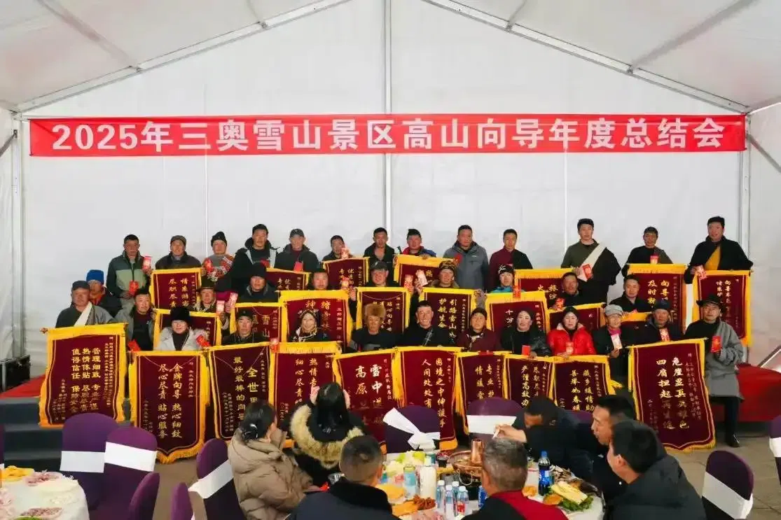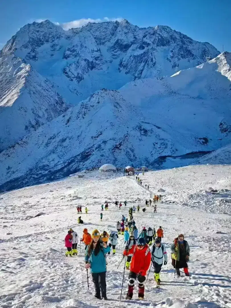 科学管理之下,三奥雪山奥太娜峰人气飞升。每天凌晨,登山客踏着夜色涌向景区,观光车在盘山路上串成长龙,载着人们奔赴海拔3800米的大本营;千百只手电筒次第亮起,聚成一条流动的光河,循着山路向顶峰蜿蜒攀升。