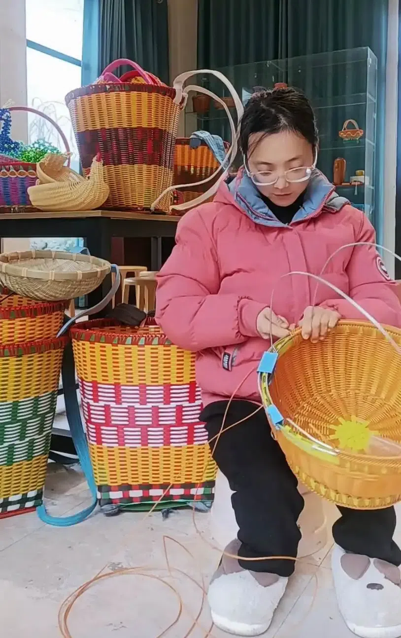 直播间隙,张艳拿起桌上一个刚编好的竹编福袋:“这是李姐刚完工的,她以前总说自己是残疾人,啥也干不了,现在一天能编好几个,加上种花生和养猪的收入,年底至少进账1.5万元,给孩子买了好多年货和新衣服。”