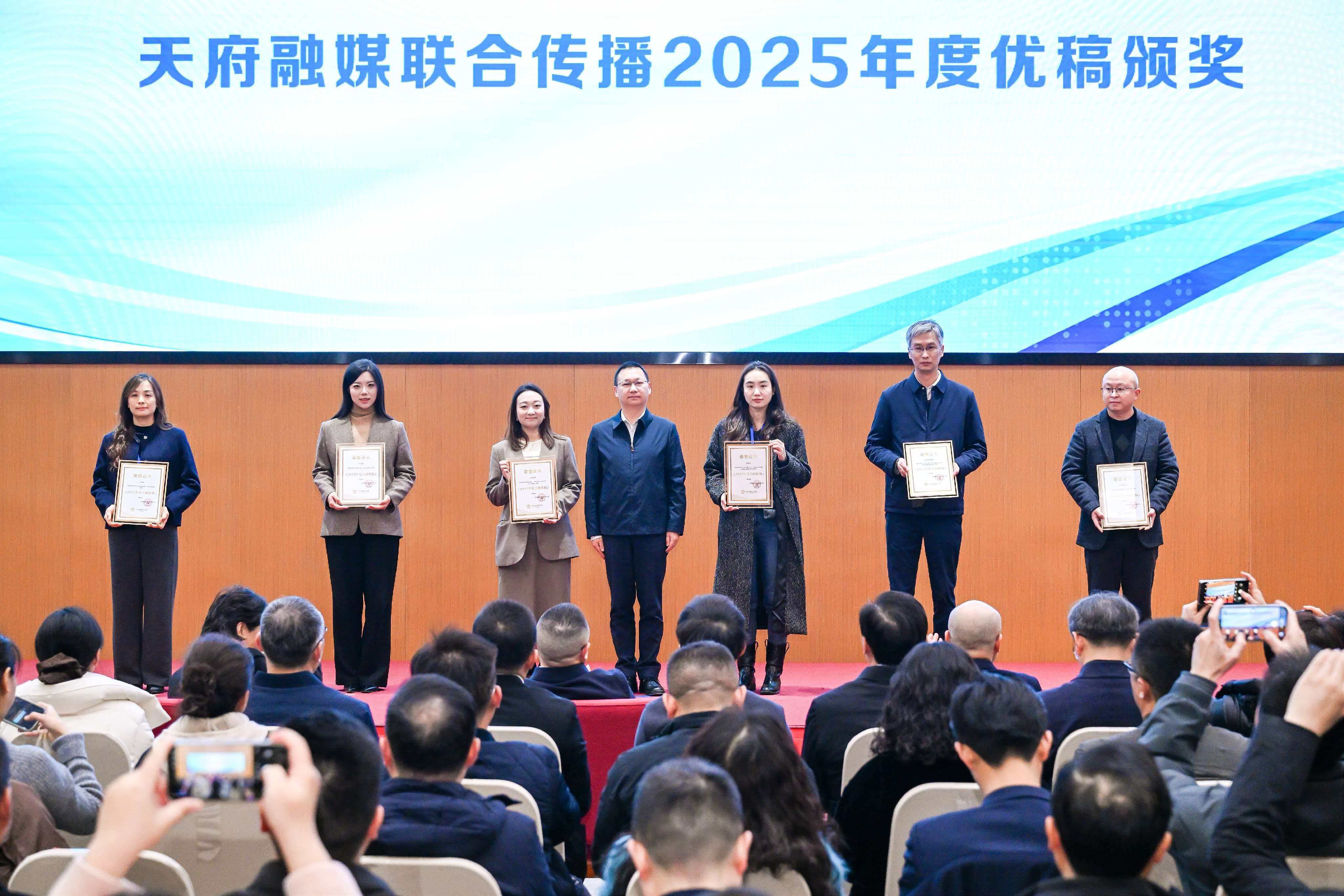 活动现场发布了“天府融媒联合传播 2025 年度优稿。经省委宣传部、省委网信办、省记协、高校专家等多方评审,从全年 7000余篇优稿中遴选出300篇年度优稿。入选作品涵盖经济发展、乡村振兴、文旅融合等重点领域,依托天府融媒联合传播机制,这些优质内容通过省、市、县三级媒体及多平台协同发布,形成“一次生产、多元分发、整体放大”的传播效应。