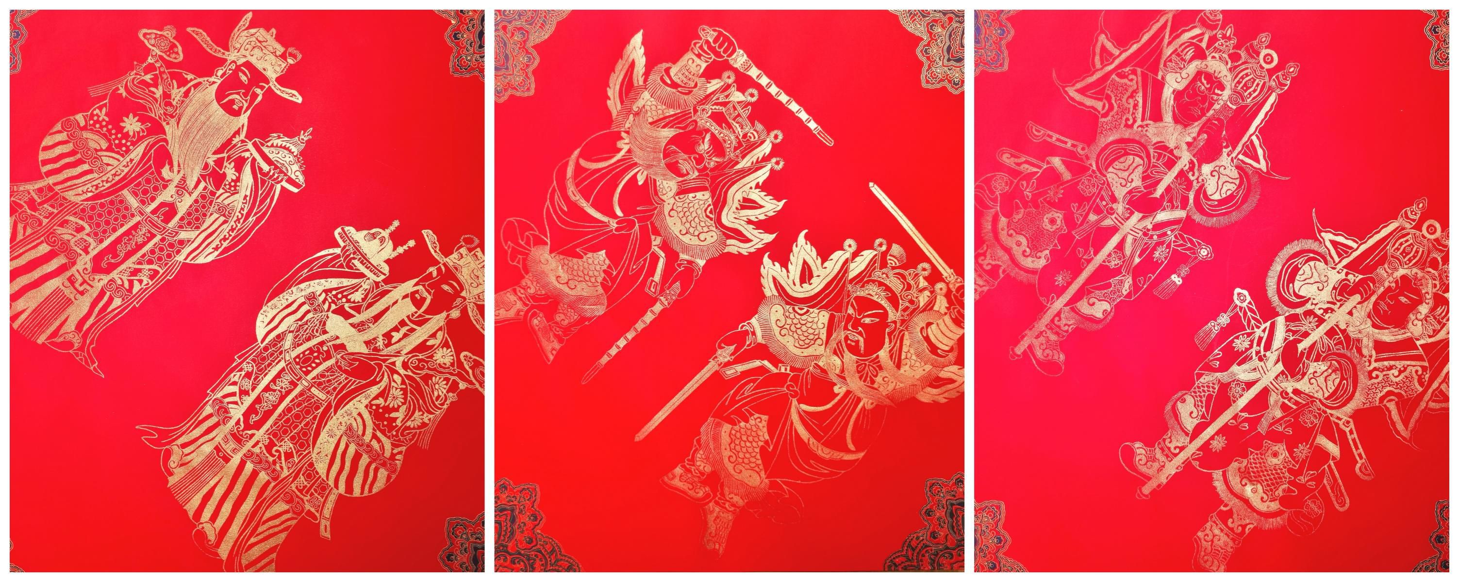 绵竹年画的推陈出新远不止于此。近日,绵竹木版年画传承人陈健匠心改良,将传统双开大门门神年画“合二为一”,打造出适配现代单扇门的手工印金门神年画,既守住传统韵味,又贴合现代生活需求。