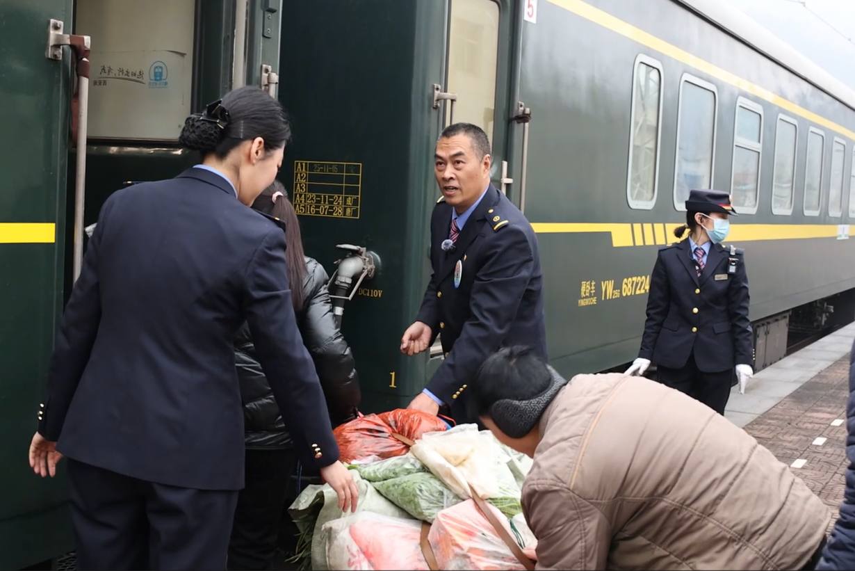 “向车长你回来了呀,大家都很想你,你还好吗?”亲切的问候声声传来,部分旅客还为向宝林送来了蔬菜、瓜果、花生等充满乡土气息的小礼物,这一切,无不诉说着大家伙对向宝林的热爱和赞许。2025年11月退休前,向宝林在宝成线工作了47年,其中20年都奉献给了这趟列车。
