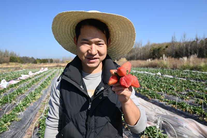 “春节这几天,每天少说两三百斤被摘走,多的时候上百人进来,地里全是弯腰找草莓的脑袋。”他指着脚边一片被踩得有些板结的土,语气里没有抱怨,反而透着几分得意,“你看这地,踏实了——都是人踩出来的!踩得越实,说明来的人越多。”