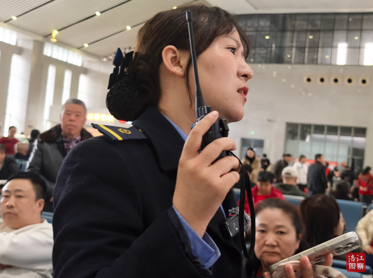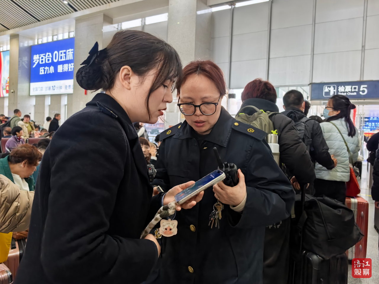 “我们的工作就是这样,紧盯进站口、检票口、站台各个点位,哪里客流大,就立刻赶往哪里引导进出、疏散人群、维护秩序,让旅客出行安心、顺畅。”李璐君说,春运期间,这样的往返奔波、重复引导的频次成倍增加。