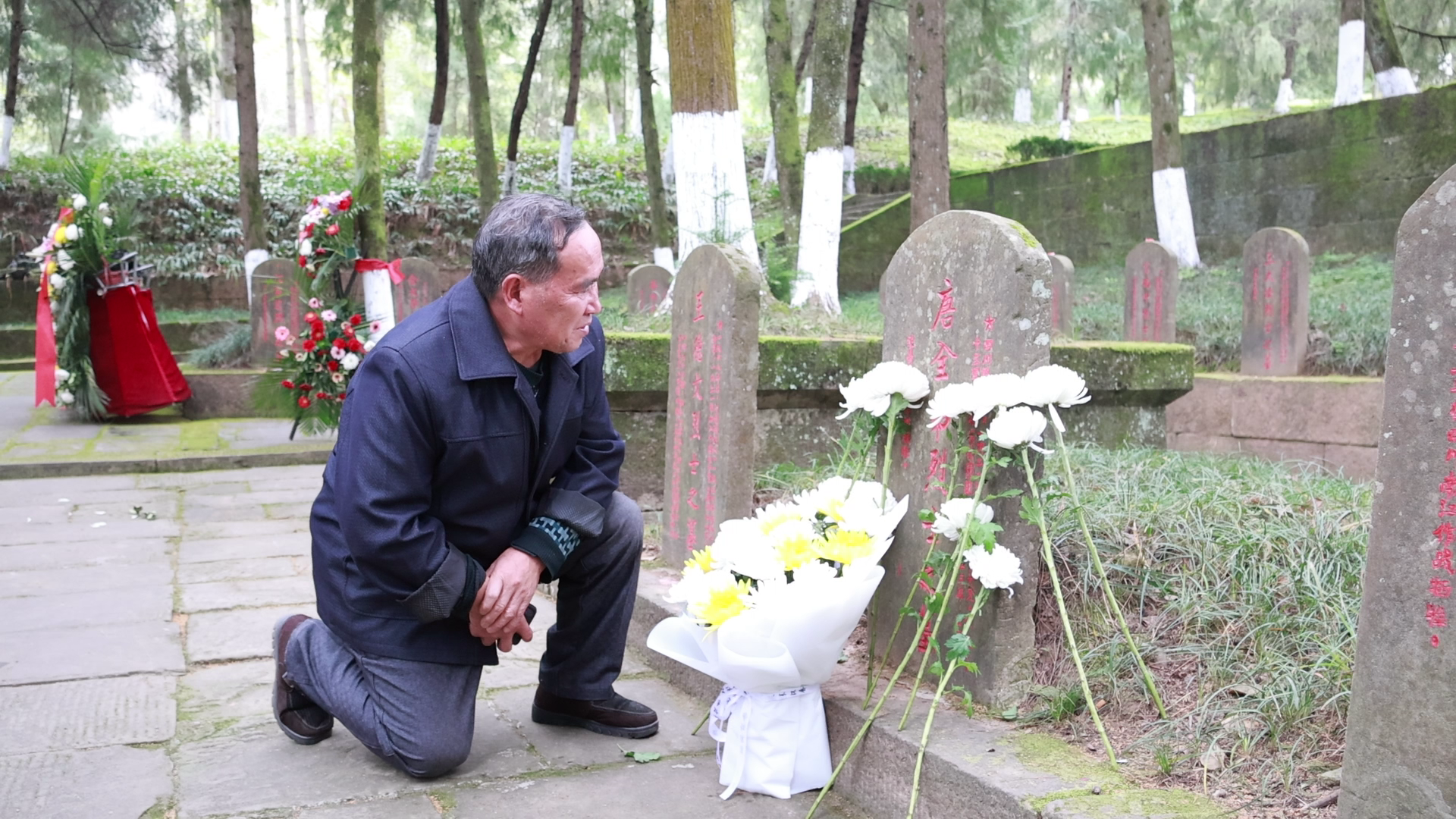 “幺爷爷,我们来看你了……”。2月26日清晨,川陕革命根据地红军烈士陵园迎来了一群特殊的祭扫者——唐全弟烈士的侄孙唐德军一行从达州赶来,在烈士墓碑前献上鲜花,伫立默哀,完成了家族几代人跨越近百年的寻亲心愿。