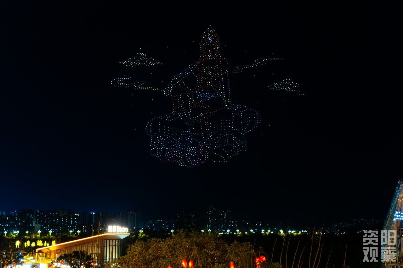 无人机组成的紫竹观音特色元素。全媒体记者 张建 摄