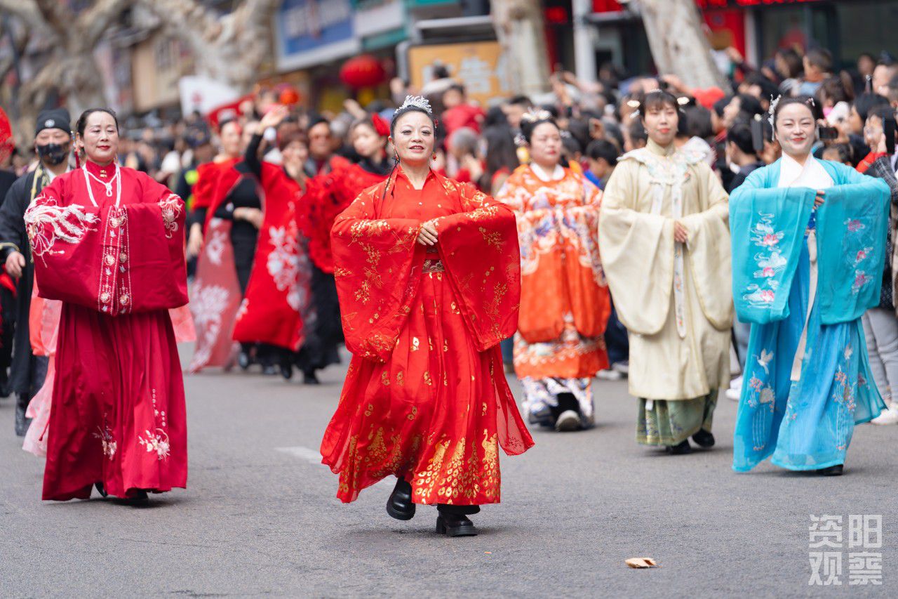 人群中,网名“董开心”的本地主播举着手机直播:“今天的活动太棒了!希望资阳以后年年都搞,这才叫年味!”65岁的赵陆林带着一家三代人,从火车站一路跟到苌弘广场:“老百姓就需要这样丰富的文化生活。”