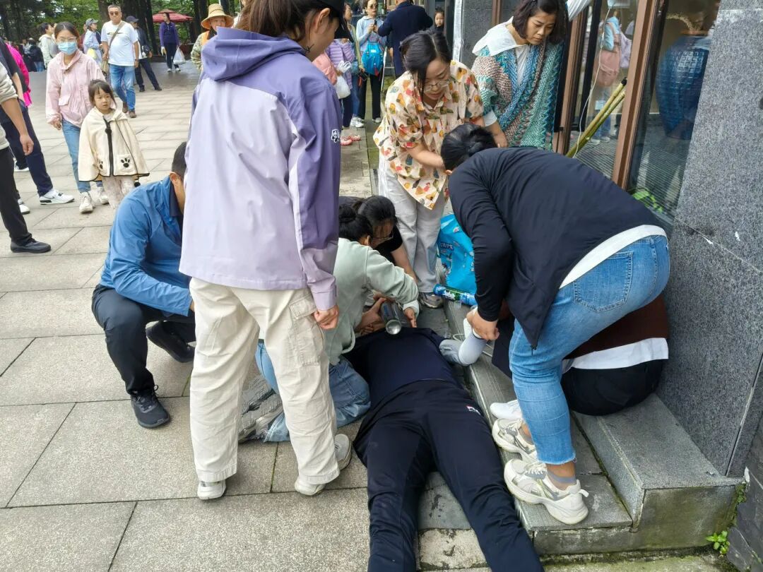 “我没有真实急救经历,但接受过多次专业培训。看到那个情况,脑子里只有一个念头——我能帮上忙吗?”怀揣“红十字救护员”证书,蔡淅韵毫不犹豫加入了这场高山之巅的生死接力。近10分钟的不间断专业急救后,晕倒游客逐渐恢复意识。