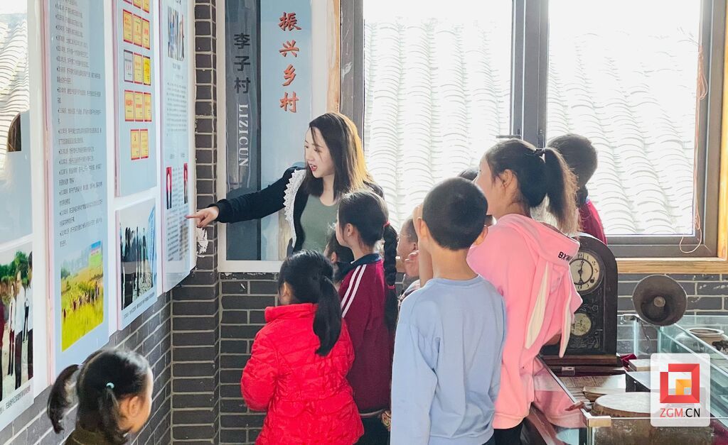 杨梅带着留守学生参观村史馆