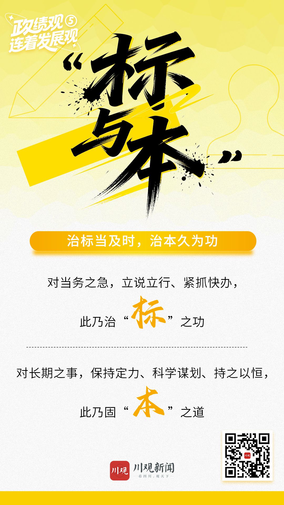 政者,正也。政绩观之“正”,不在浅层浮华,而在民心所向。新征程上,当以百姓心为心,辨清“标”与“本”的辩证之道——治标以解当下之急,固本以谋长远之兴。不贪一时之功,不图表面之效,方能让发展经得起实践、人民、历史的检验,让民族复兴的脚步在固本强基中走得更稳、行得更远。