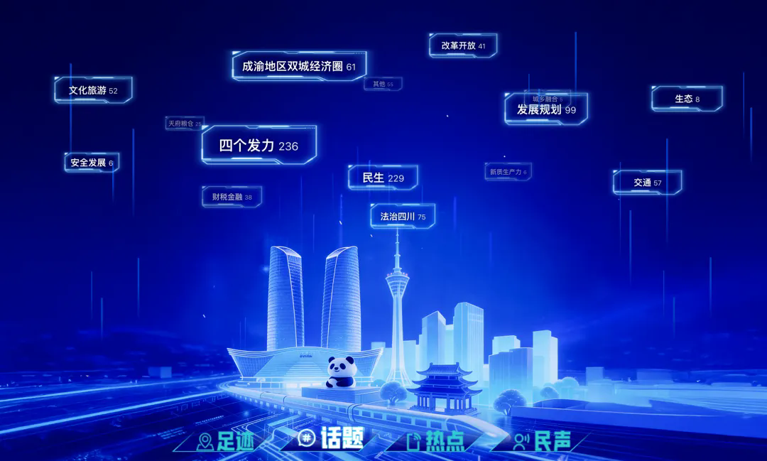履职数据,将民生的温度、文旅的热度、内联外畅的广度、发展的精度等与代表委员调研的脚步相融合,以科技感的设计风格和大数据可视化方式,呈现履职背后的数据图谱。