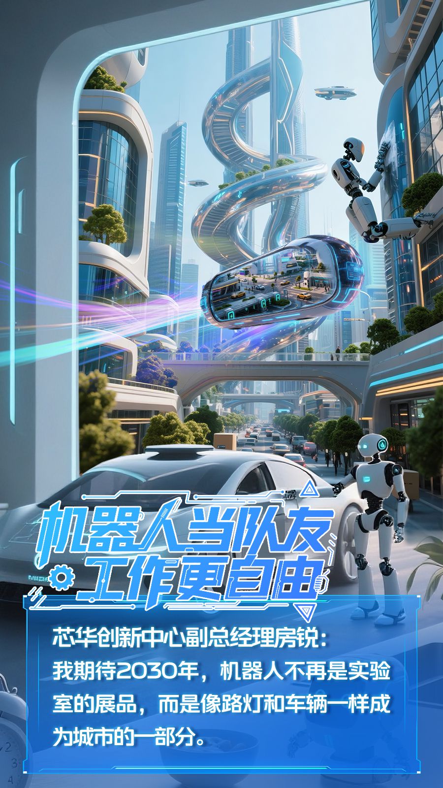 “这是机器人的文旅应用场景之一。五年后,我期待机器人能够在公共空间实现常态化作业,它们不再是实验室的展品,而是像路灯和车辆一样成为城市的一部分。也就是说,社会拥有了人与机器协同共存的运行秩序。”芯华创新中心副总经理房锐看着身旁的“小芯”,憧憬地说道。