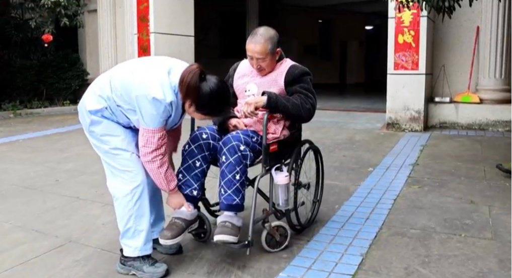 每天清晨,蒲玉便开始了忙碌的工作。从喂饭、翻身、擦洗,到陪老人聊天、散步,这些琐碎又辛苦的日常,她重复了整整十一年。没有惊天动地的事迹,却用日复一日的耐心与细心,温暖着老人们的晚年时光。