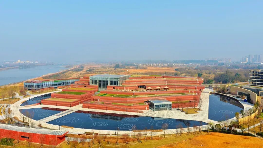 江口之畔,一座外圆内方的赭红色建筑静默矗立,与两江山水浑然相融,便是江口沉银博物馆。