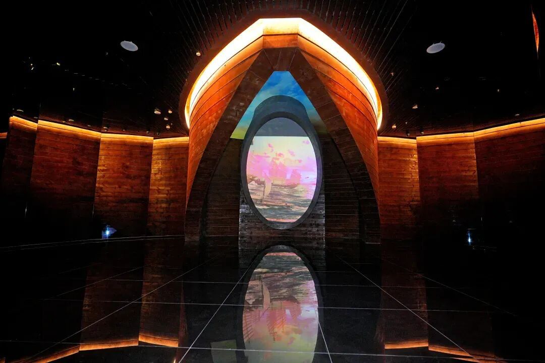 走到尾厅,一艘根据真实沉没的“万历号”商船复原的大船巍然矗立,仿佛正随时准备扬帆起航。