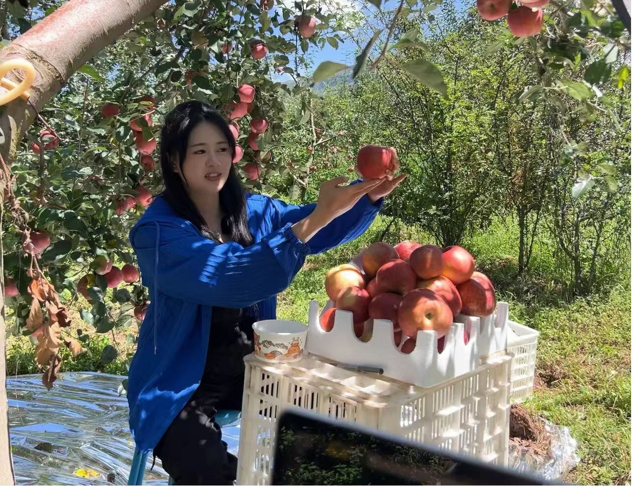 没有华丽的包装,没有专业的脚本,周静团队凭借真实的种植场景、接地气的讲解迅速圈粉,寂静的高原果园成了热闹的直播间:清晨露水未干,主播手持苹果对着镜头介绍生长历程;午后的阳光洒满枝头,现场切开一颗“糖心苹果”,汁水顺着指尖缓缓滴落的“爆汁”画面,瞬间击中网友,引得订单接连不断。