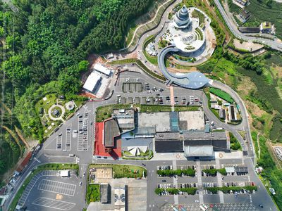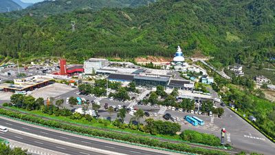 走进服务区,川藏公路馆内陈列着老照片、公路装备,讲述着“两路”精神的传承;熊猫广场上,熊猫造型的雕塑与文创产品随处可见;“鲟龙虹桥”人行步道连接两岸,既是游客通行的通道,更是俯瞰服务区全景的打卡点。