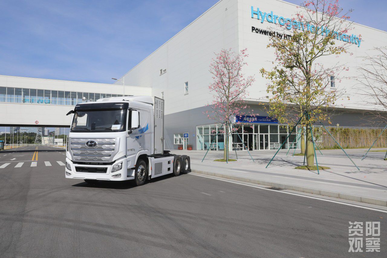 让我们把视线从资阳转向千里之外的广州:一辆辆挂着现代车标的氢燃料电池轻卡、冷藏车正穿梭于城市的大街小巷。它们都有一个共同的出生地——资阳。