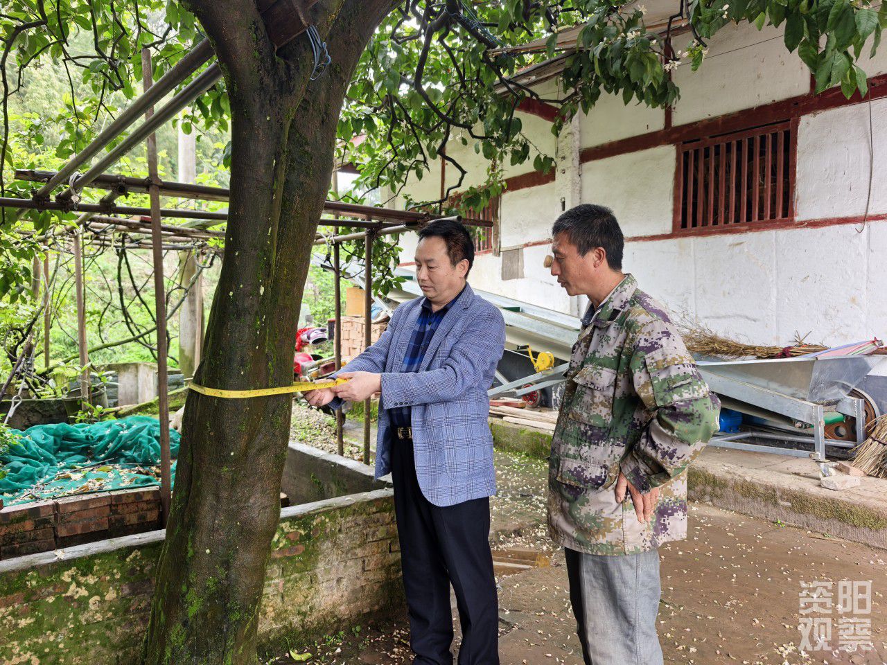 四十四年历经风雨,仍然长势良好,离不开精心管护。记者注意到,一根碗口粗的木棍支撑着枝干。“挂几百斤果子时,枝干压力大,这是传统管护法子,对这棵‘功勋老树’更得上心。”朝阳镇农业综合服务中心工作人员秦族权解释道。