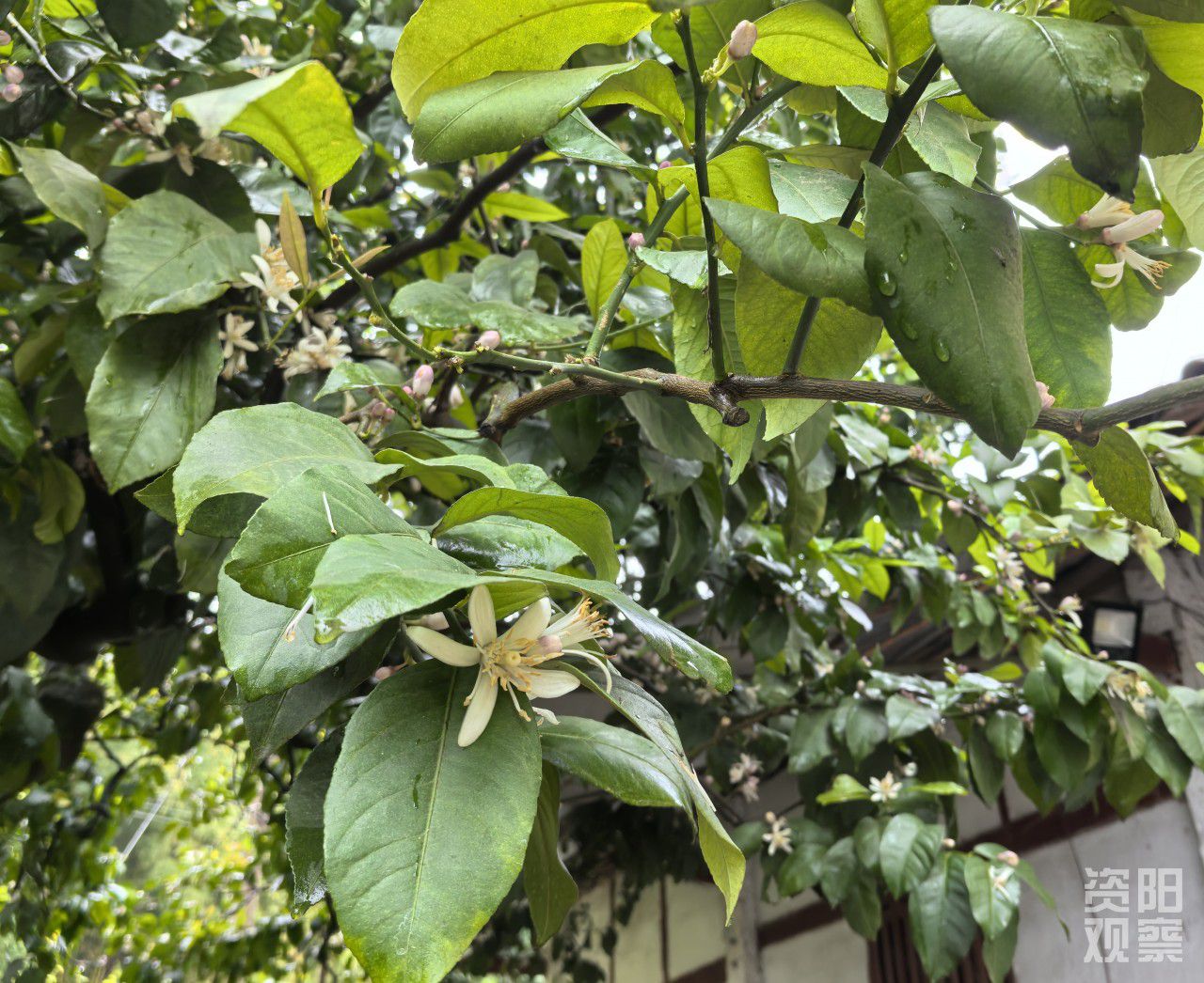 记者走近,只见一棵柠檬树撑开巨大的冠幅,洁白的花苞密密匝匝缀满枝头,清香漫过院墙、飘向田埂。树下,90岁的丁桂琼老人搬张小凳坐着,仰头望着满树繁花,嘴角含笑。