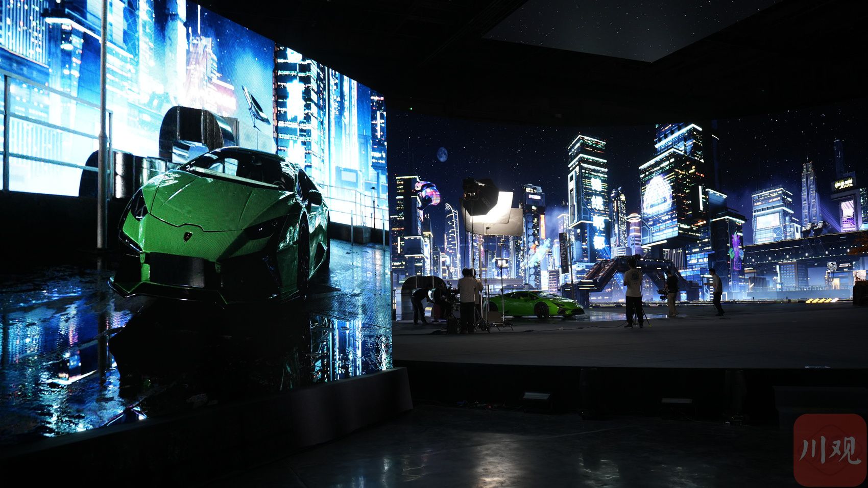 720平方米的LED弧形巨幕上,虚拟场景瞬间切换,演员穿梭在戈壁荒漠、城市地标、广袤草原等拍摄场景中。4月14日,成都市郫都区,一场颠覆想象的视觉盛宴拉开帷幕。