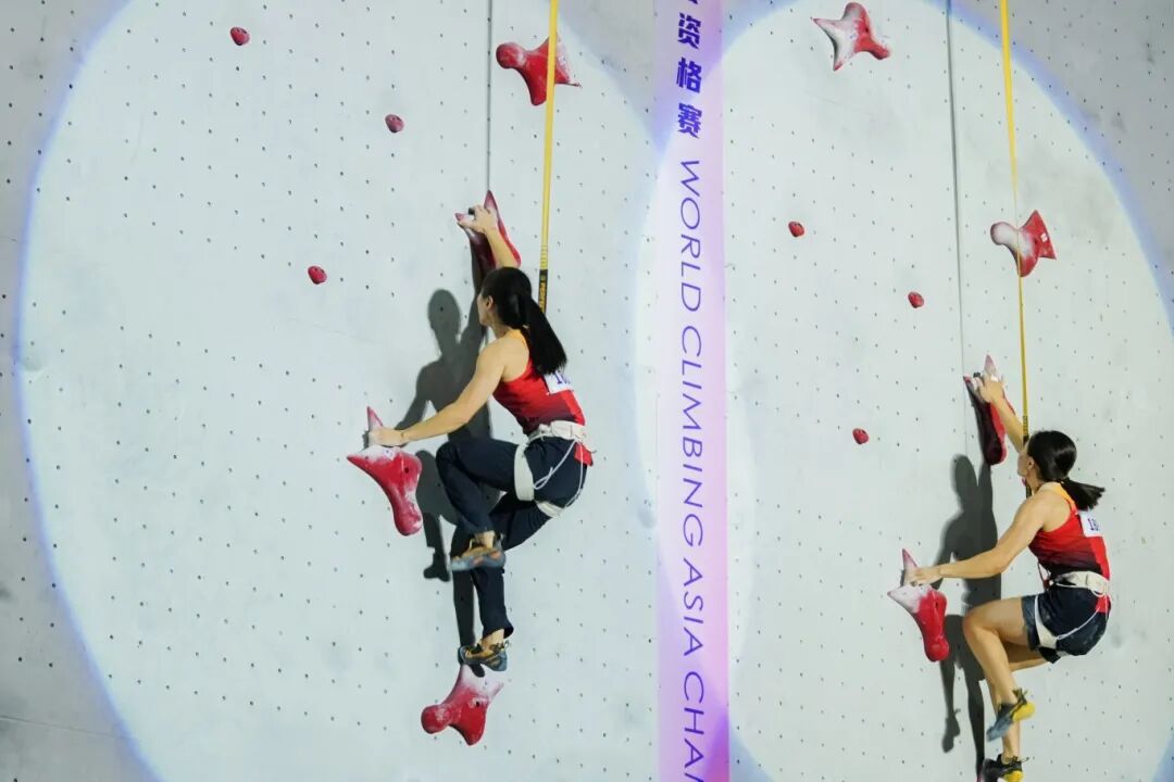 男子速度决赛上演“中国德比”——世运会冠军储守宏以4秒90力克首次参赛的周子羽(5秒04),强势登顶;女子速度赛中,印尼名将德莎克两度刷新亚洲纪录,将成绩提升至6秒07,距离世界纪录仅差0.04秒;中国选手周娅菲、覃于妹分获银铜牌。