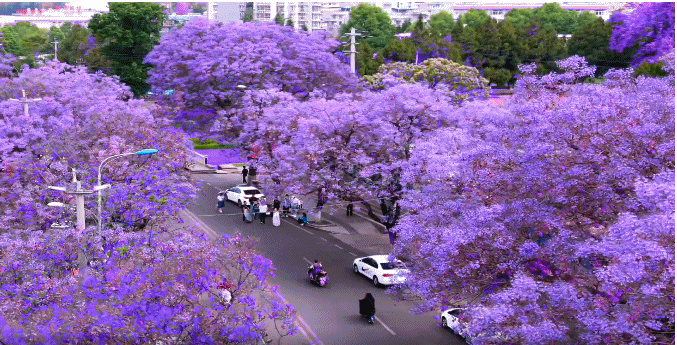 • 航天北路:这里的蓝花楹树龄最长,花开时如紫色瀑布倾泻而下,是西昌当之无愧的“网红打卡地”。