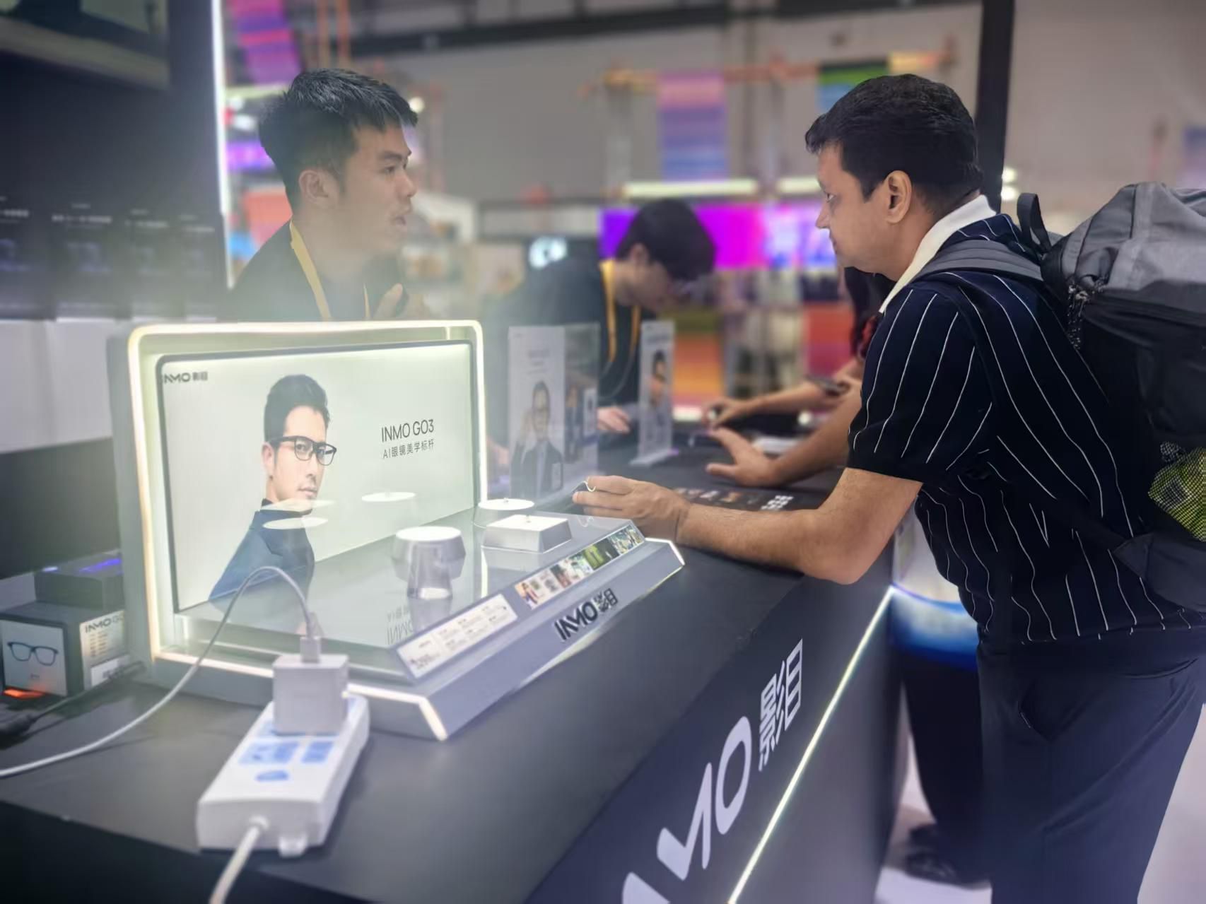 说到“蜀里好服务”展区,简直就是把黑科技照进现实。这里可能是全场体验感最强的区域。影目科技的智能眼镜、卿心懂卿科技的可穿戴外骨骼徒步设备成了“排队王”。专业观众争相上身体验,直呼“成都用科技把品质生活安排得明明白白”。