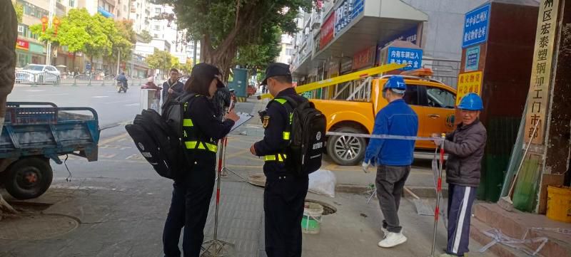 在巴城江北望王路东段的人行道上,一处井盖塌陷碎裂,边缘锋利。正在巡查的“背包城管”发现后,立即从包里掏出警戒带和专用工具,设置警示区,并联系责任部门。不到半小时,新井盖严丝合缝地盖上。