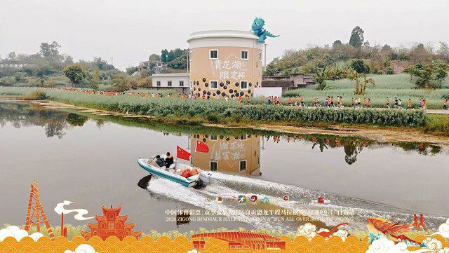 每年3月,恰逢自贡恐龙半程马拉松鸣枪开跑之时,五彩油菜花迎来盛花期,金色花海沿着青龙湖环湖赛道蜿蜒铺展,成为赛事最动人的自然背景板。一边是青龙湖的碧波荡漾,一边是油菜花海的暗香浮动,在奔跑中沉浸式感受“一路风景、一路芬芳”的独特体验,也让这片花海借助赛事的热度,成功将“赛事流量”转化为“经济增量”。