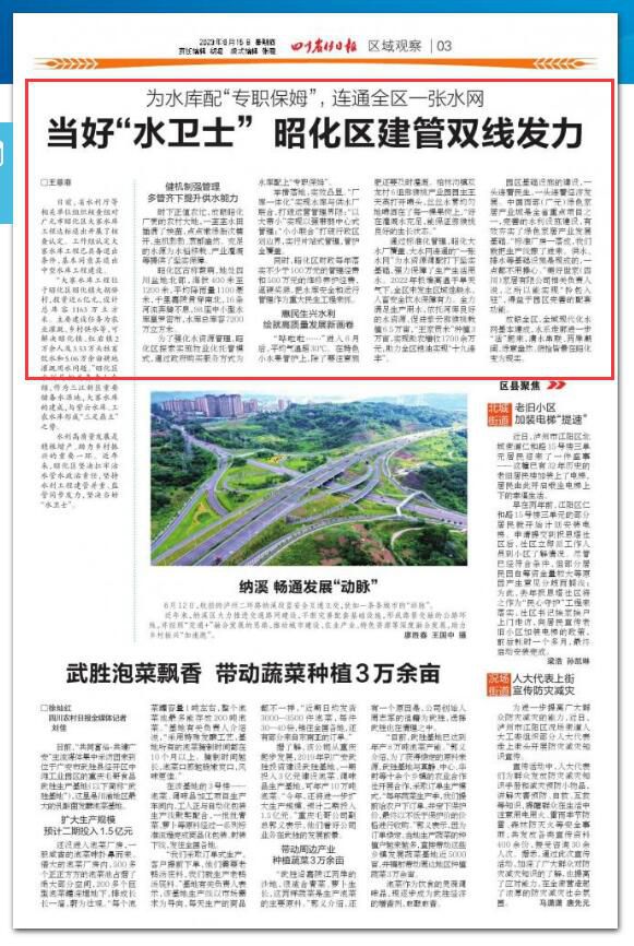 通过标准化管理,昭化大水厂覆盖、大水网连通的“一张水网”为水资源调配打下坚实基础,强力保障了生产生活用水。2022年极端高温干旱天气下,全区未发生区域性缺水,人畜安全饮水保障有力。全力满足生产用水,依托河库良好的水资源,促进紫云猕猴桃栽植6.5万亩,“王家贡米”种植3万亩,实现助农增收1700余万元,助力全区粮油实现“十九连丰”。