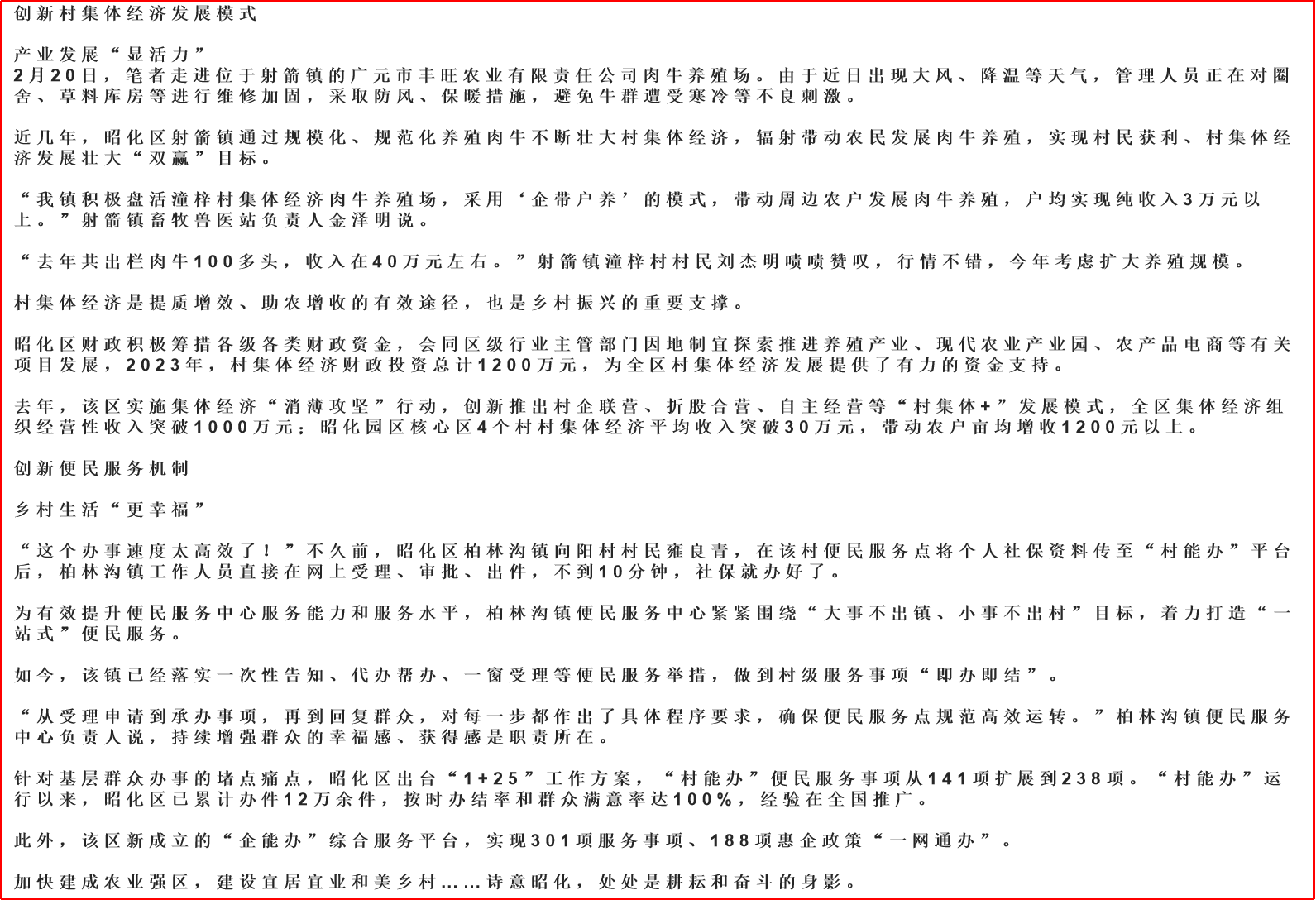 去年,该区实施集体经济“消薄攻坚”行动,创新推出村企联营、折股合营、自主经营等“村集体+”发展模式,全区集体经济组织经营性收入突破1000万元;昭化园区核心区4个村村集体经济平均收入突破30万元,带动农户亩均增收1200元以上。