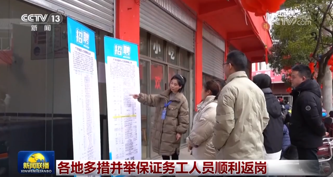 2月18日【CCTV-4《中国新闻》】、【CCTV-13《新闻直播间》】、【CCTV-13《朝闻天下》】中国各地多措并举保证务工人员顺利返岗
