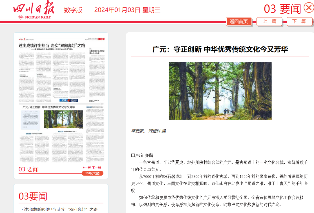 1月3日【四川日报】广元:守正创新 中华优秀传统文化今又芳华