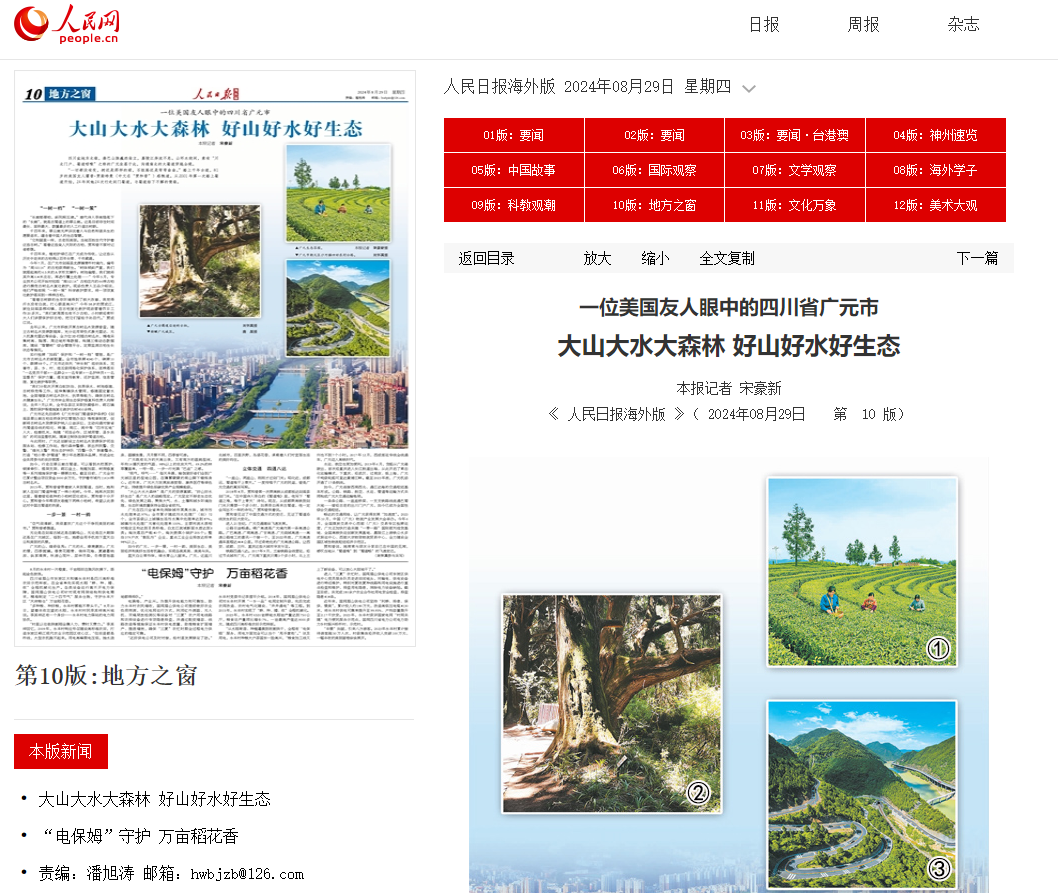 8月29日【人民日报】一位美国友人眼中的四川省广元市 大山大水大森林 好山好水好生态